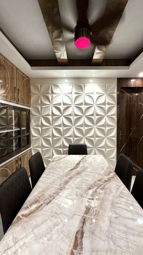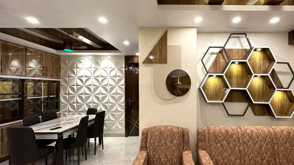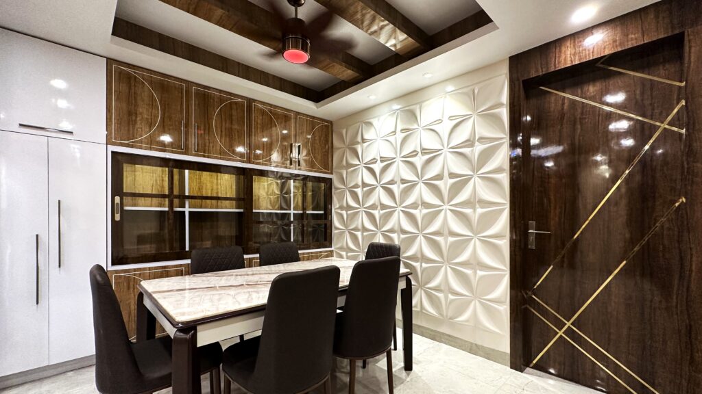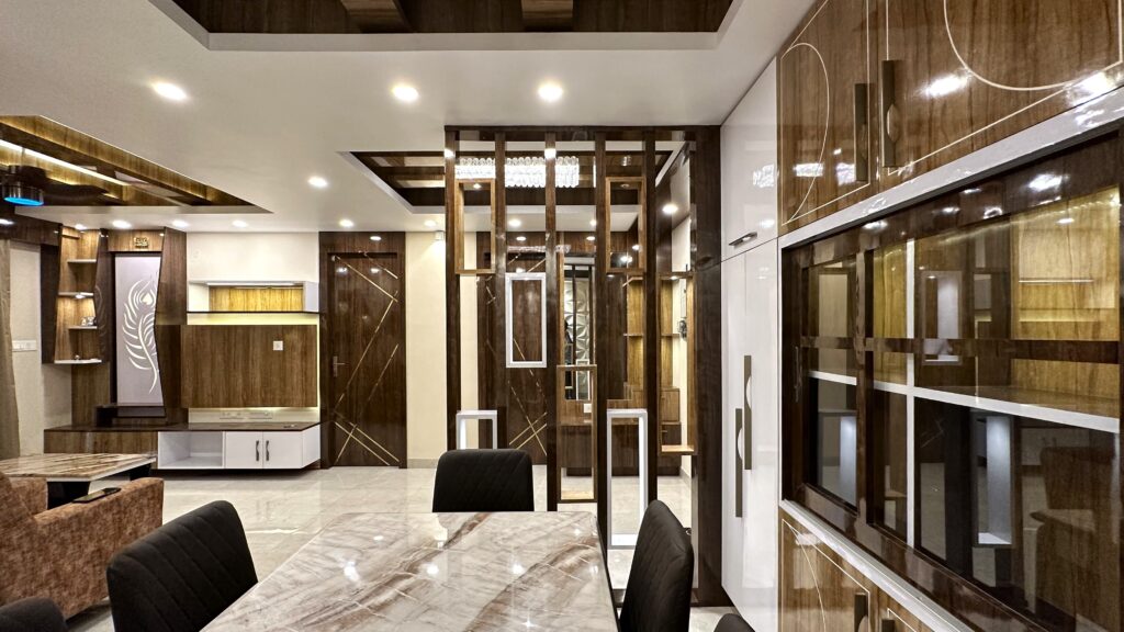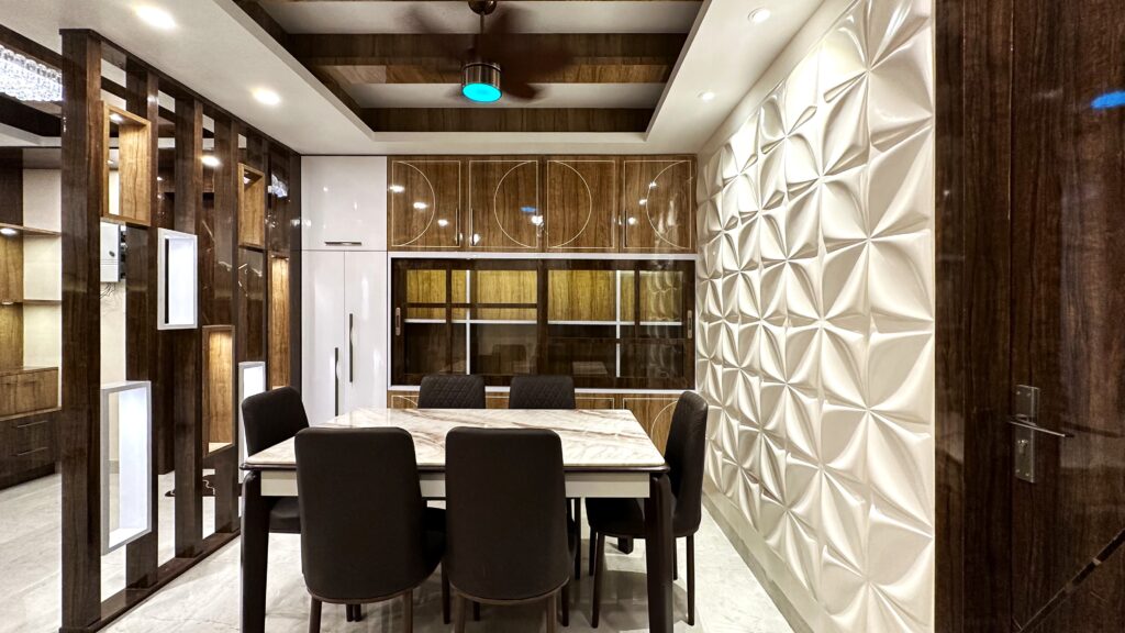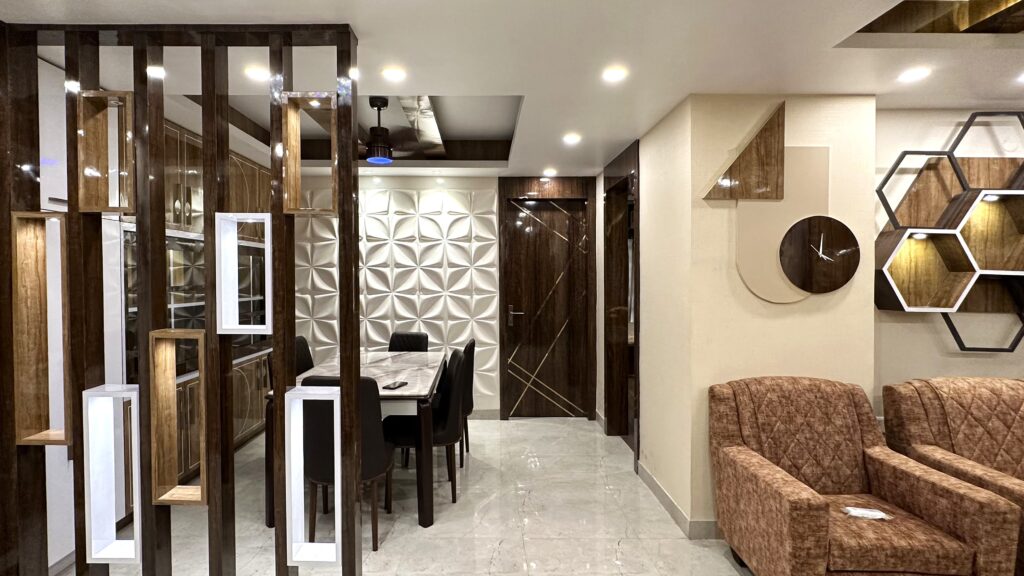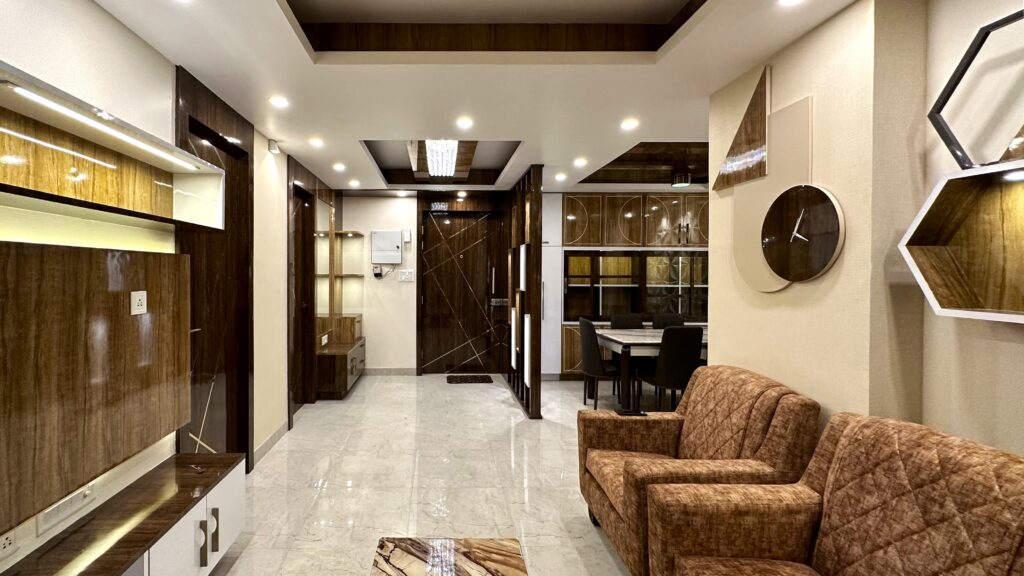 This interior design project is located in Starwood, Chinarpark, Kolkata, for client Samir Paul. The images showcase a modern residential space featuring sleek furniture, false ceiling work, and ambient lighting. Highlights include an elegant wall paneling, and functional storage solutions. The design blends neutral tones with warm lighting to create a cozy, contemporary atmosphere. Quality finishes and attention to detail are evident throughout, from the wardrobe fittings to the TV unit. The overall aesthetic reflects a balance of comfort and sophistication, tailored to meet the client’s lifestyle and preferences with thoughtful planning and execution.